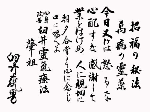 そして命をかけて再興させてくださった臼井先生の五戒と共に、日々靈氣を使って歩んでいくことで、私たちが本質=愛に戻っていく事が出来るのだと思います。